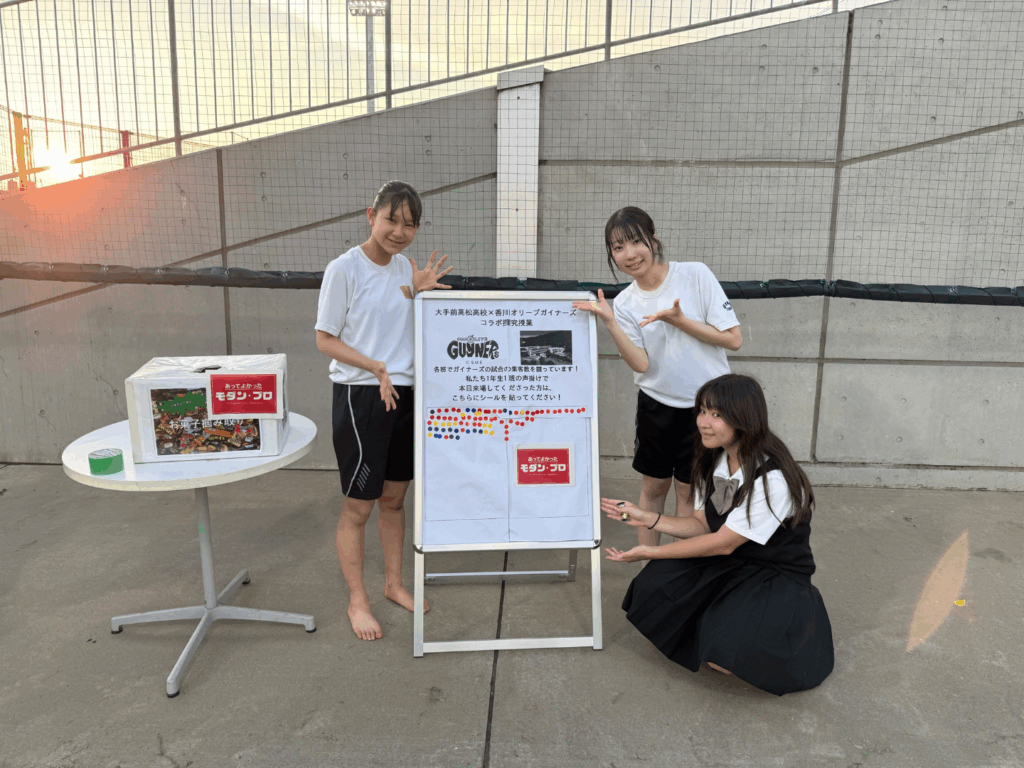 本校の高校1年1組(未来探究iコース0期生)では、探究学習の一環として、プロ野球独立リーグ・四国アイランドリーグplus所属の「香川オリーブガイナーズ」と連携した特別授業を行っています。
