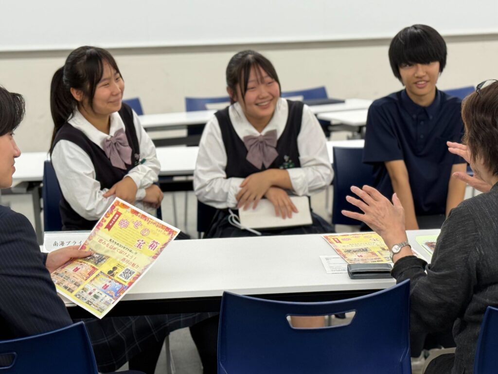 中学3年1組の生徒たちが作成に取り組んで、8月に完成・販売開始した地域の魅力を届けるカタログギフトの完成報告会を開催しました。