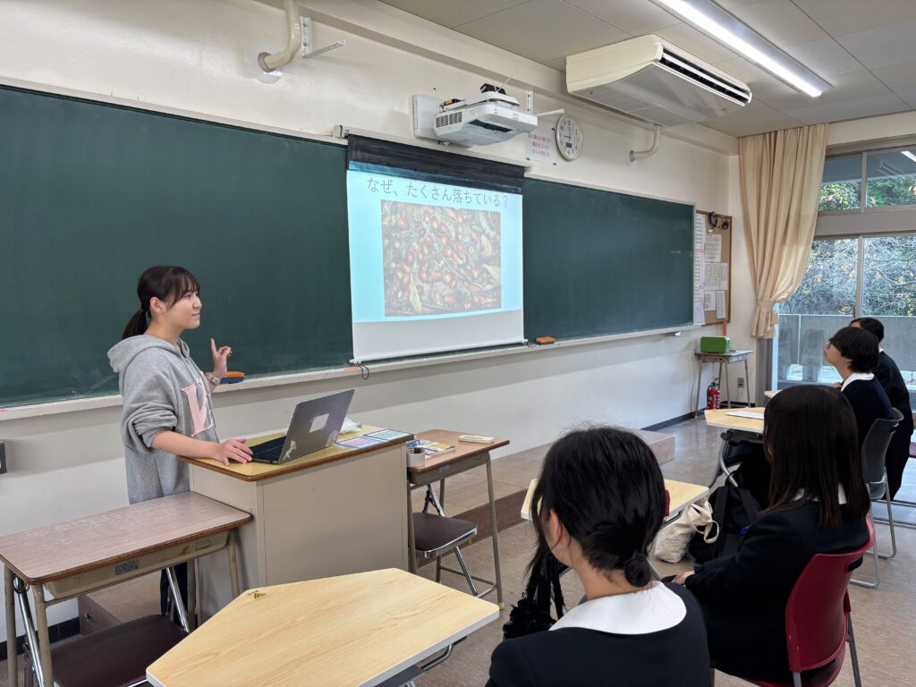 集めたどんぐりは、このあとどんぐり珈琲づくりに活用していきます。身近な自然にある素材に目を向け、そこから新しい可能性を考えていく生徒たちの姿が印象的でした。