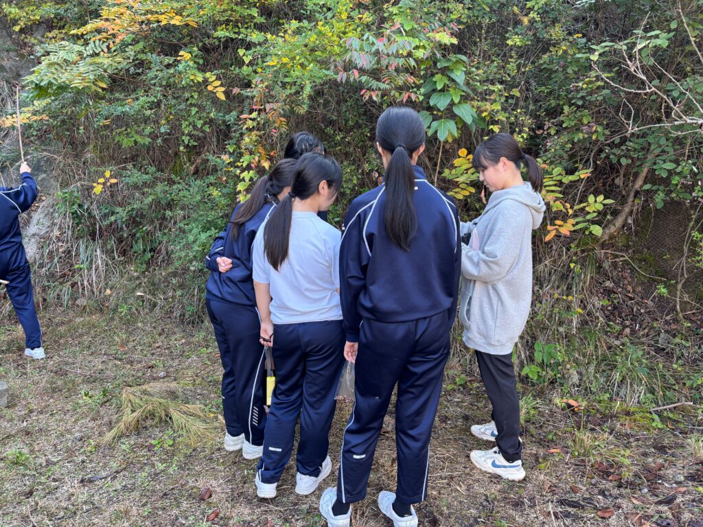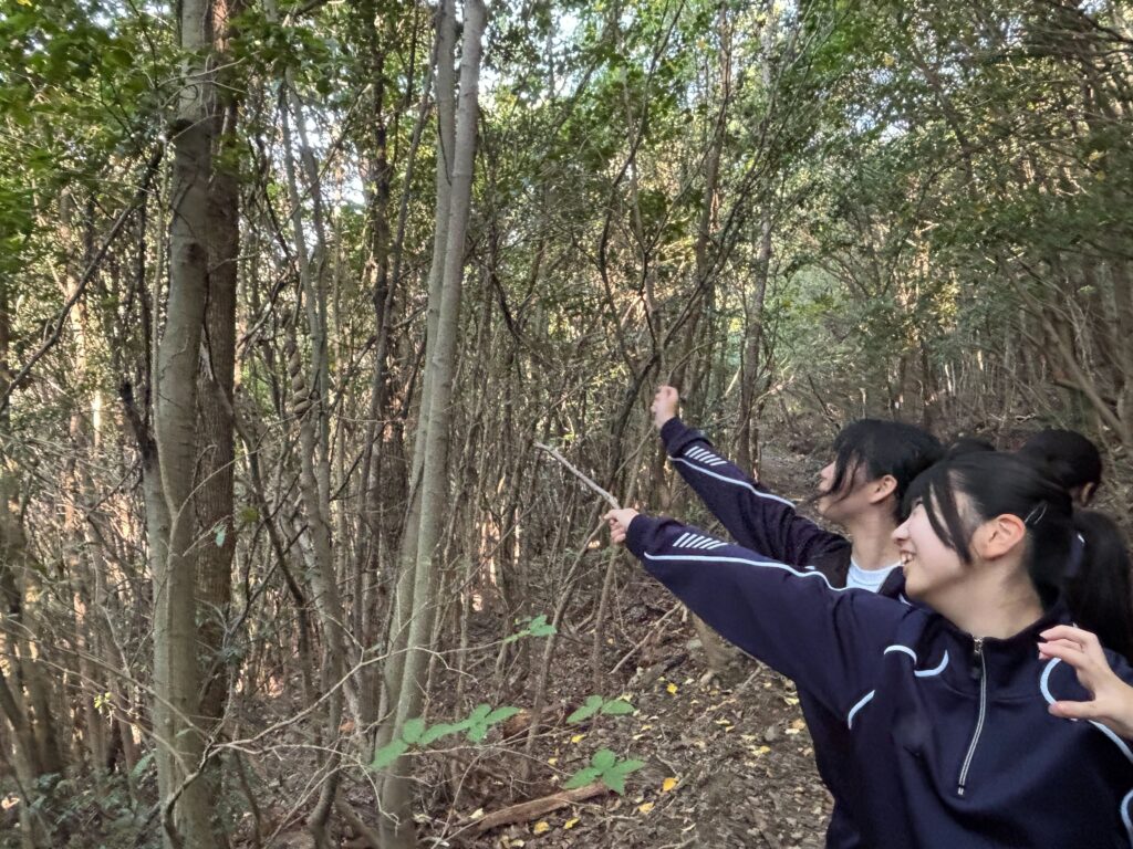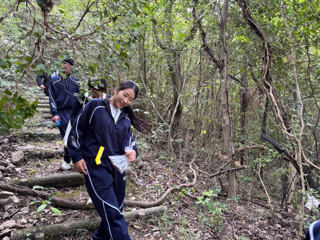 11月15日(土)、高1‐1の生徒たちは、大手前高松高校の裏山で自然体感の授業を行いました。前回の海での学びに続き、今回は「森の恵み」をテーマに、どんぐりの種類や形を観察しながら拾い集めました。