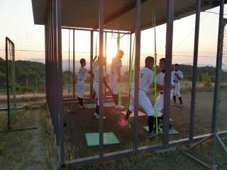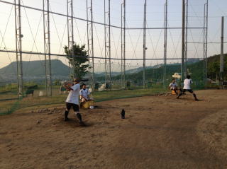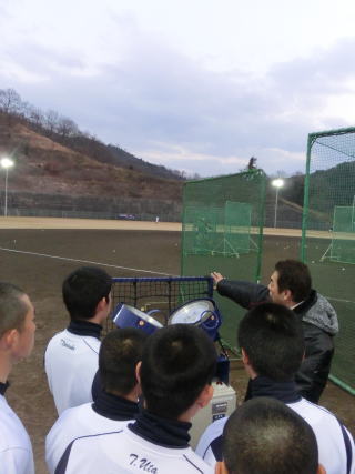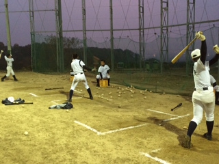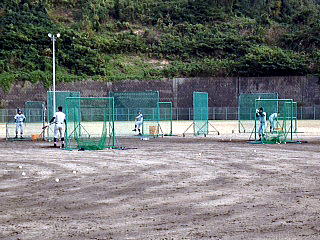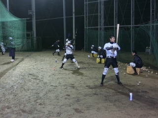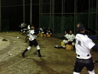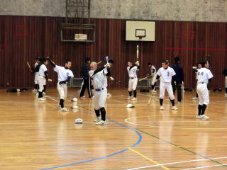 学校でトレーニングを行い、その後グランドへ移動し、打撃強化のメニューを行いました。今年の冬のテーマのひとつに「数」とあります。その中で身につく感覚もあります。今日はいくつかのグループに分け、ひたすらバットを振ってもらいました。 |