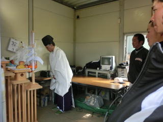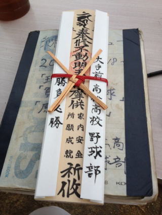 | 神棚奉斎を行いました。出雲大社高松分祀の神主様に来ていただきましたが、出雲大社は縁結びの神様だそうです。「甲子園への縁結びがありますように」というお言葉をいただきました。ありがとうございました。 |