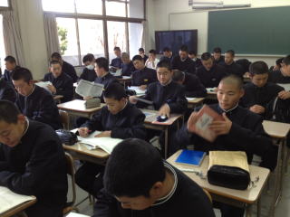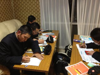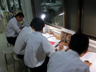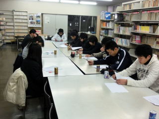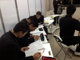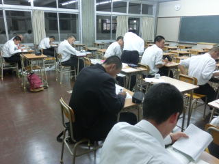 練習の後は多くの部員が勉強していました。翌日のアドバンステストに向けての準備だと思います。こちらも全力で勝負です。 |