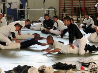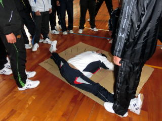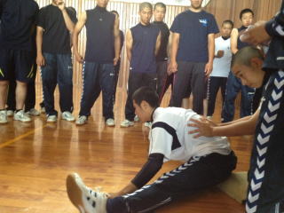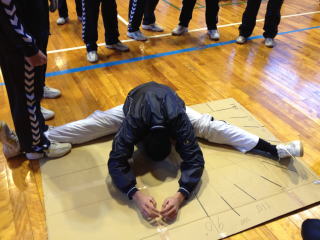 毎週水曜日の朝はストレッチテストです。上半身、下半身それぞれ評価基準を設け、各自の状態を確認しています。下半身は開脚150度で自力で胸をつけることを目標にしていますが、クリアできている者はまだ少ないです。随分可動域は広がっていますが、こうして基準を設けて評価するとまだ達成率が低いことがわかります。一番怖いのは指導者も含め、やっているつもりになることです。現状をしっかり確認しながら一歩一歩確実に進めていきます。 |