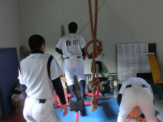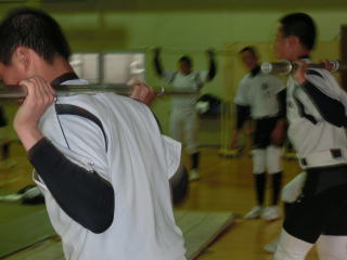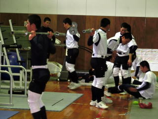 雨のためトレーニング中心のメニューでした。試合期に入り、トレーニングのメニューも変わってきています。筋量→筋力→動き(スピード)へと移行していきます。春の大会でピークに持っていけるように考えていきます。 |