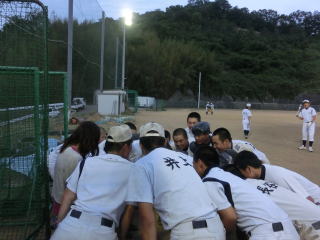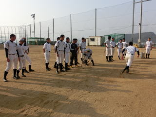志度高校と3年生メインのゲームを行いました。3年生の全力プレー、全力発声、野球に対する想いが伝わってくる素晴らしいゲームでした。1・2年生は大会と同じように応援しました。3年生の想いが伝わって、こちらも素晴らしい応援でした。涙する部員もたくさんいました。思いはひとつです。全員で大会に挑みます。このような機会を作っていただいた志度高校関係者の皆様、ありがとうございました。 |