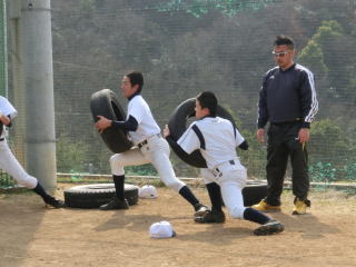 気温が低く、トレーニング日としました。林氏のトレーニング指導などを参考に、大きくなった体に対して、スピードやスタミナが落ちないようにグランドでのトレーニングも大切にしています。この時期当然ノックや打撃の量も増えています。各自が体のケアに努める必要があります。