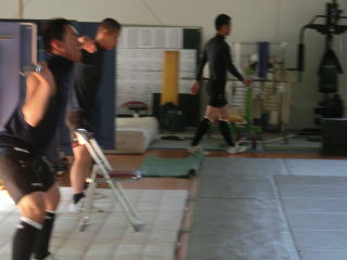 林氏のトレーニングの日でした。増えた体重をスピードに変えていく時期です。トレーニングメニューもスピード系の内容に段々移行していきます。3月上旬に測定があるので、向上させていきます。 |