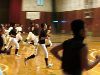 あいにくの雨でしたが、水曜日は強化の日。体育館で走塁練習を行い、守備基本ドリルや打撃メニュー、最後にグループに分かれトレーニングで終了しました。今年の冬のテーマは「数」 「体幹」 「走塁」。体幹はまだまだ弱いです。すぐに強くなるものではないですが、徹底してやります。 |