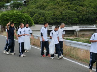 苦しいトレーニングも声を掛け合い、明るく前向きにすることが大切です。大手前の学校の周りは環境が素晴らしく、トレーニングするには最適です。