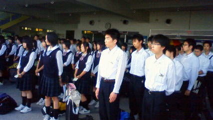 | 朝、高松空港に集合。出発式を行い、健康調査などを済ませ、元気に出発しました。 |