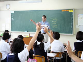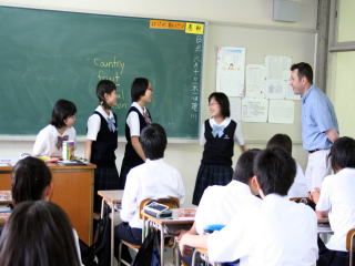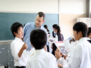 | 中学校1年生の英会話授業です。ジャクソン先生から、相手の好きなものを尋ねる英語表現を習いました。"Which