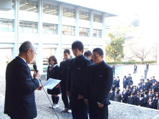 2月5日に、行われた校内マラソン大会の各コース(高校男子、高校女子、中学男子、中学女子)の総合成績の優勝チームの表彰が行われました。