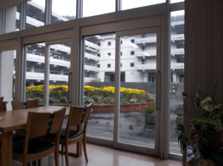 台風26号の影響により今日は雨、食堂周辺の様子です。