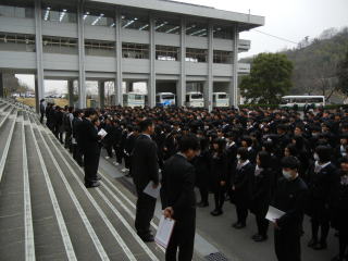 本日は朝礼が行われ、全校生徒が中庭に集合しました。