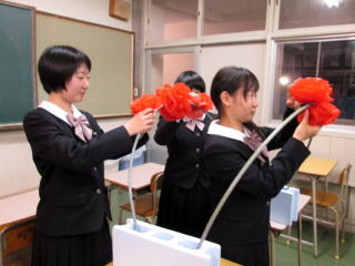 来週に行われるセンター試験激励会に向けて、生徒会役員が準備をしています。