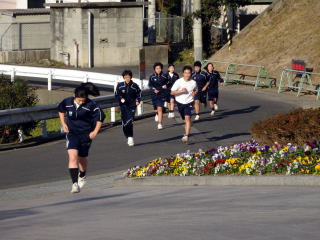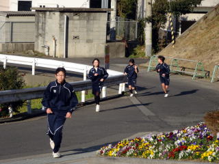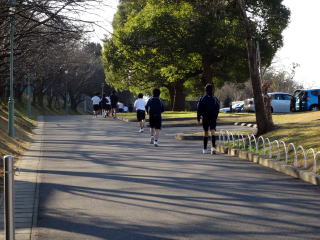 2月10日のマラソン大会に向けて、体育の授業では奥の池の周りを走っています。