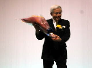 (写真は、松岡さんとお母さん、村上先生)