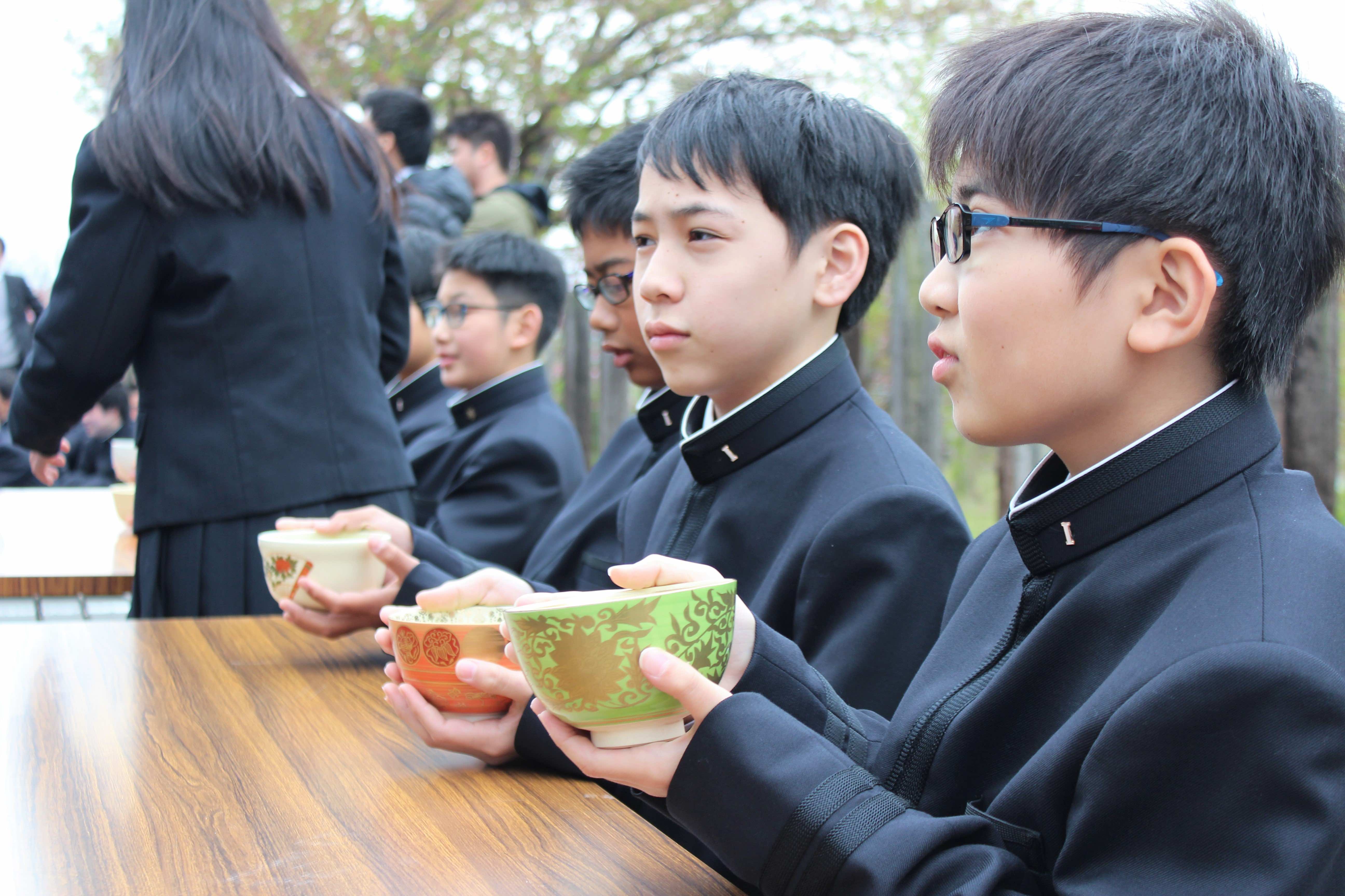 本日、新入生の歓迎行事として、桜茶会、対面式、お花見コンサートが行われました。