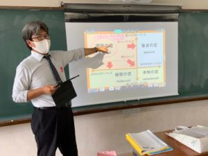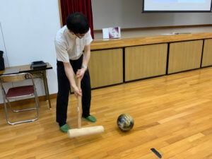 本日の合田先生の物理の授業では,自身の持たれているマイボールとマイ杵を使って授業を進めていました。