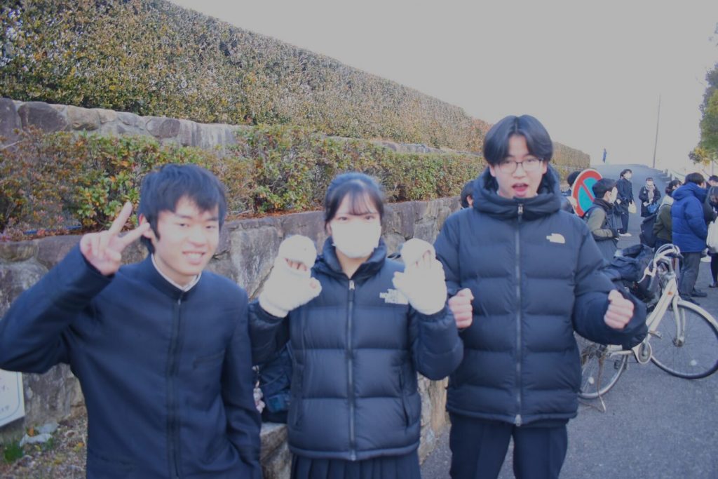 大学入学共通テスト 2025.01.20 1月18日19日、共通テスト本番。闘志、自信、緊張、不安。それぞれいろんな気持ちを抱えながら本番に臨みました。「やれることはすべてやってきた」そう思って自信をもって頑張ってほしい、と担任の先生たちが試験会場へと見送りました。「頑張って!」