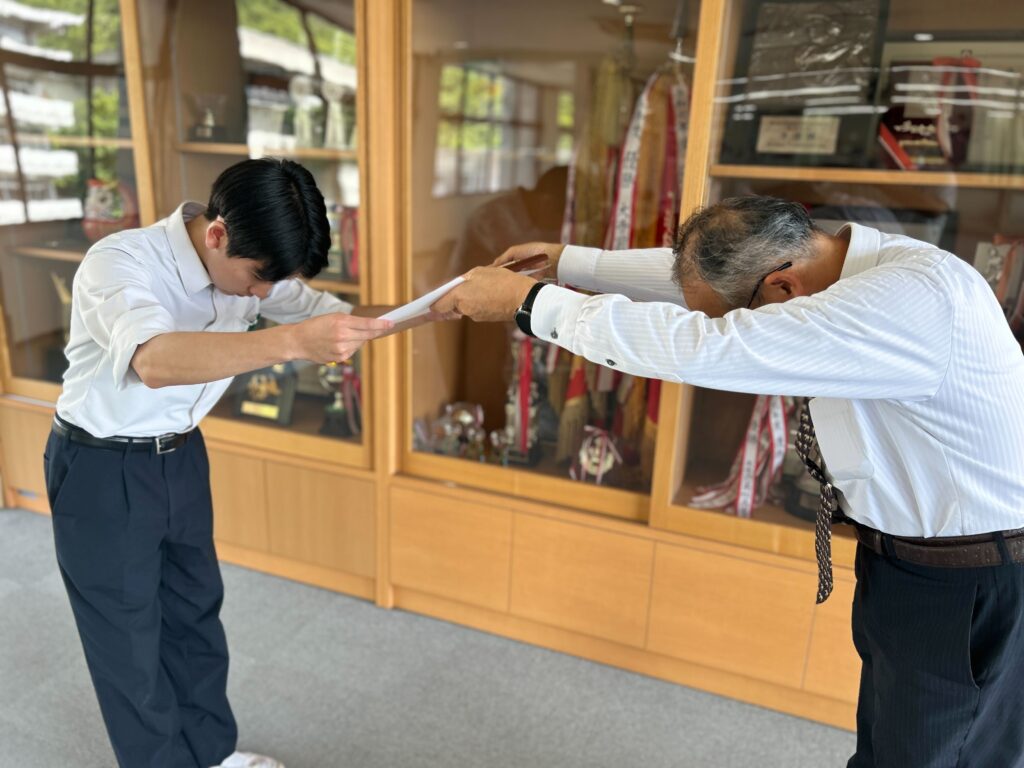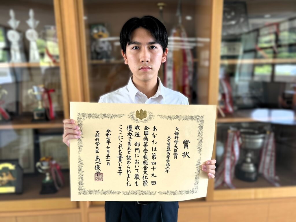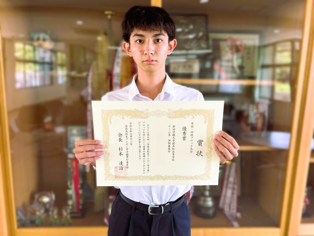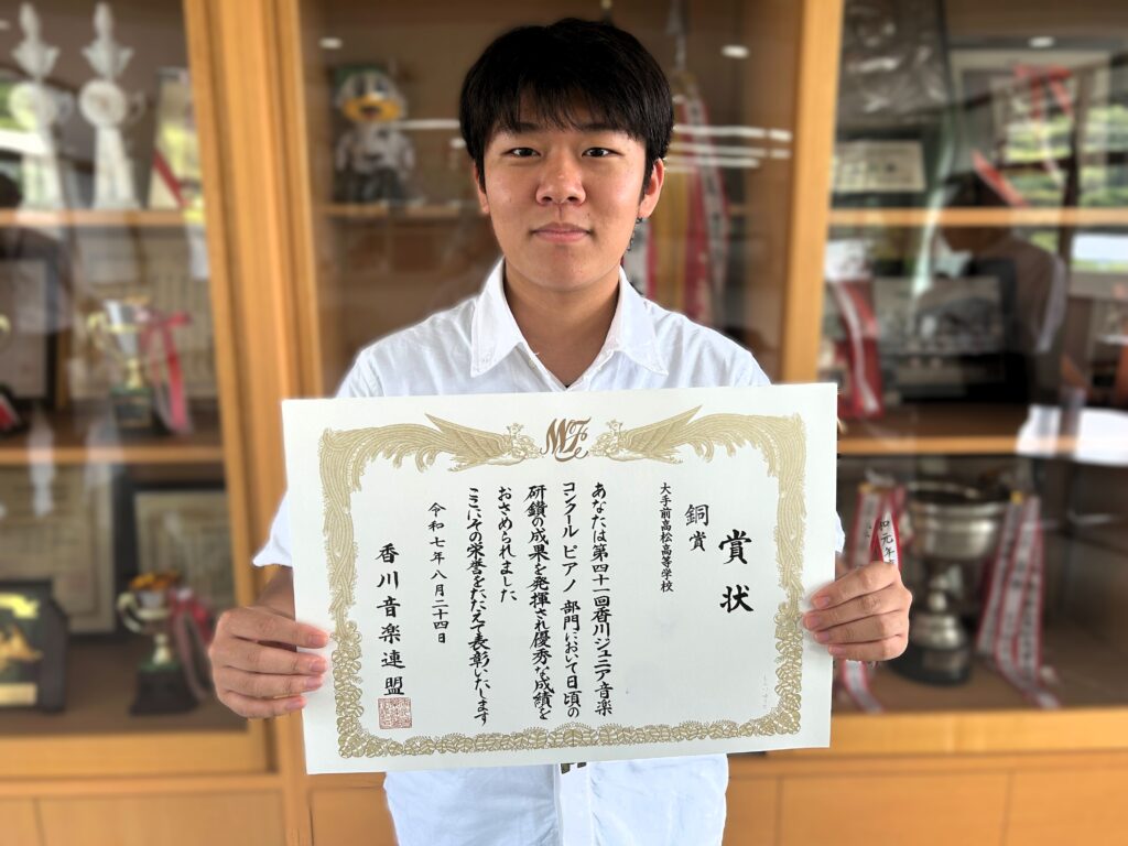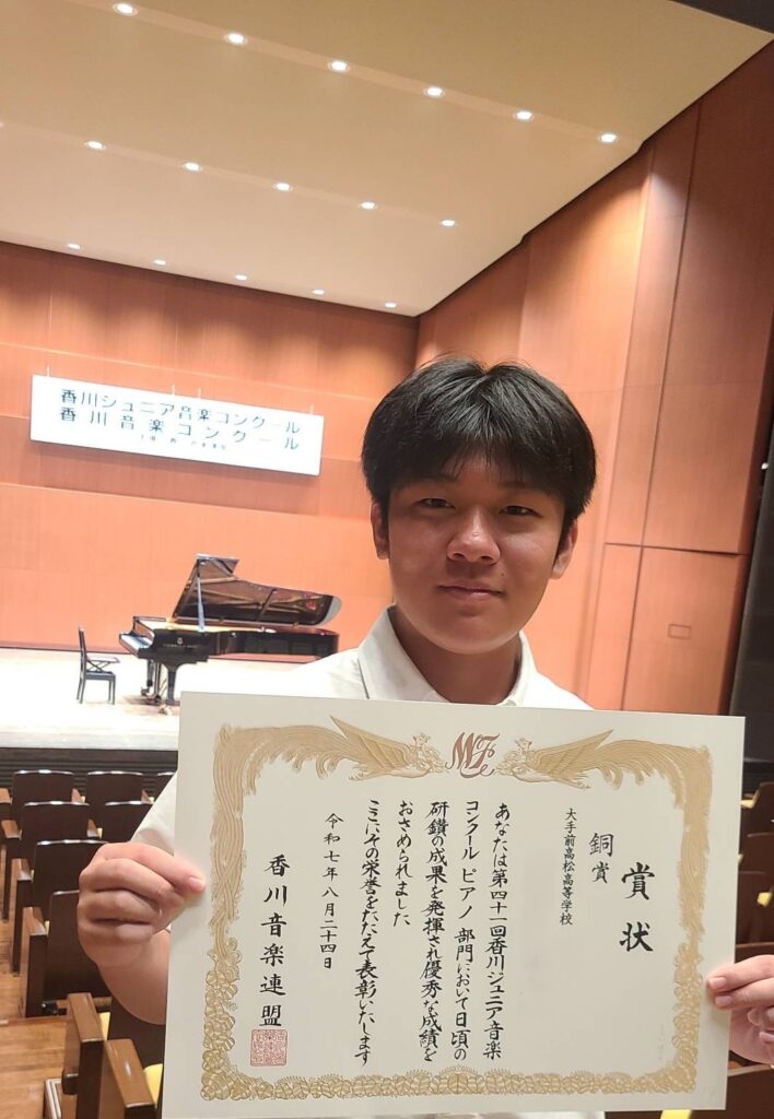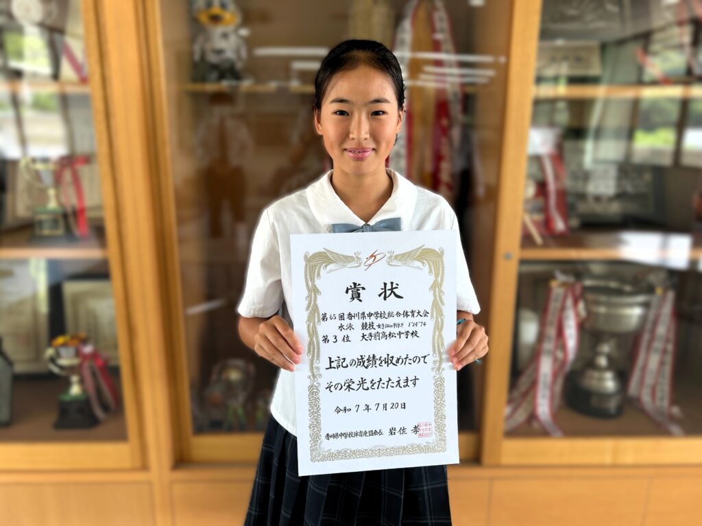 表彰【放送、中学野球、プレゼン、水泳、ピアノ】 2025.08.28 放送 第四十九回全国高等学校総合文化祭放送部門 文部科学大臣賞朗読部門 優秀賞 中学野球部 第17回蔦文也杯選抜野球大会 準優勝 第五回全国高校生プレゼン甲子園 中国・四国ブロック大会 優秀賞 中学総体 水泳競技 女子100m平泳ぎ 第3位 第41回香川ジュニア音楽コンクール ピアノ部門 銅賞受賞