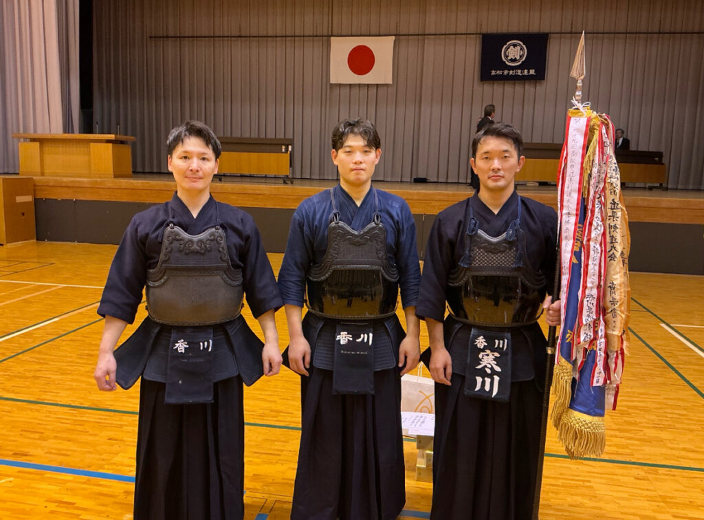 高松近県大会では、高校生の部に本校の高校男子チームが出場し、成年の部には本校教諭の寒川先生が出場しました。その結果、寒川先生が成年の部で見事優勝しました。