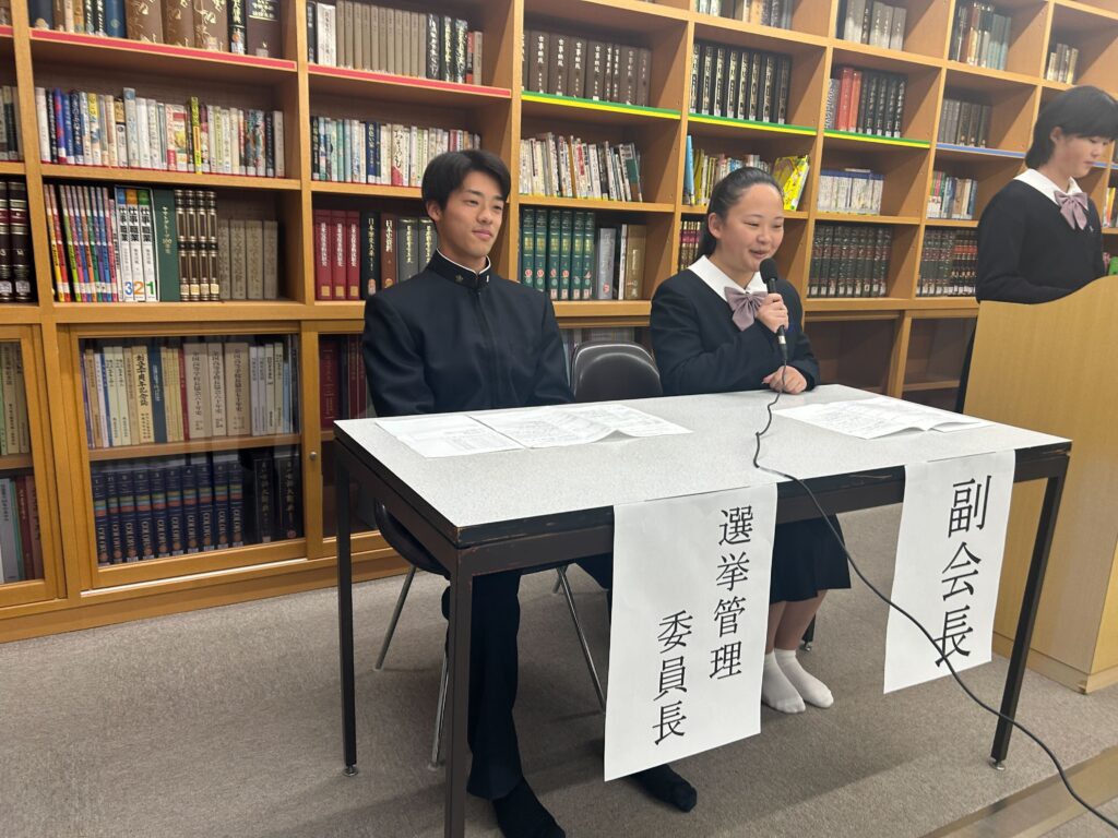 生徒会からは、これまでの活動報告と今後の取り組みについての発表があり、参加した生徒たちは真剣なまなざしで耳を傾けていました。