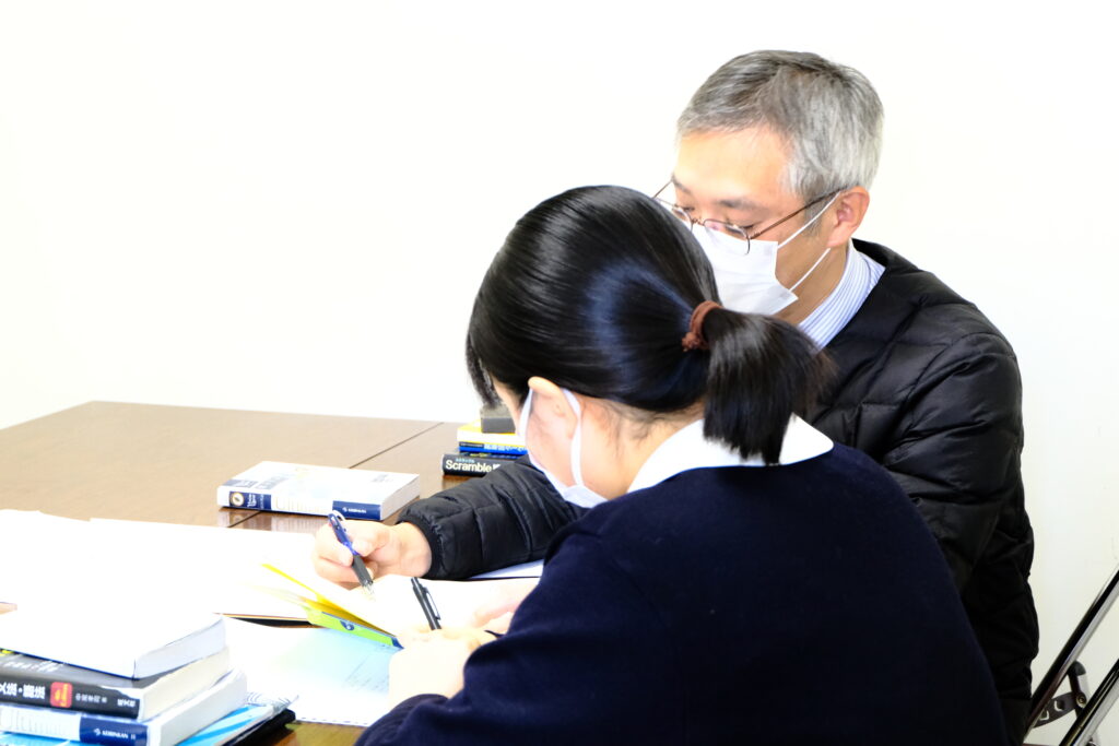 国公立大学2次試験指導 2026.02.02 国公立大学の2次試験に向けて個別指導が始まりました。受験生はこれまでの積み重ねにさらに努力を注ぎ、それぞれの目標に向かって走り続けています。そして我々教員も受験生の伴走者として、その目標に辿り着けるよう受験生とともに走っています。