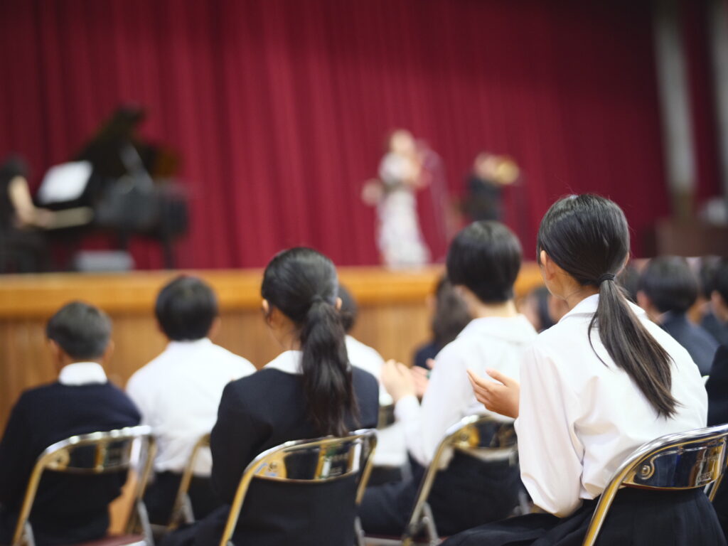 「本物」に触れる機会を!ー大手前高松では3年に一度、演劇や音楽などの芸術を生で体験する「Special three-year Event」という行事があります。今回はジャズボーカリストERIKAさん、ジャズ・トランペット奏者菊田邦裕さん、ジャズピアニスト梅田玲奈さん、3人によるジャズコンサートを本校で開催しました。 心地よいジャズのリズムに乗り、様々なジャンルの歌を披露していただきました。コンサートの終盤には、ERIKAさんの呼びかけに有志が集まり、歌のセッションで大いに盛り上がりました。夢を持ち続けてほしいというERIKAさんのメッセージ、心を震わせる歌声、響き渡る伸びやかなトランペットの音色、ジャズの軽快なリズムを刻むピアノ、すべてが生徒にとって貴重なものとなりました。