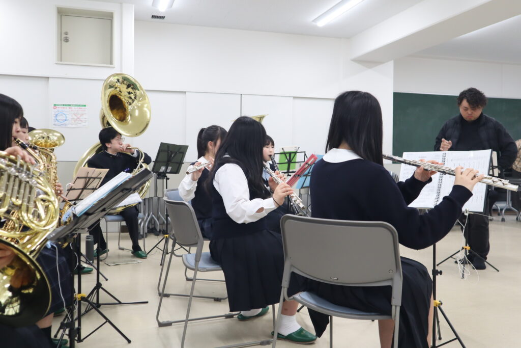 まず、プロのトランペット奏者の方から演奏指導をしていただき、さまざまな視点から貴重なアドバイスをいただきました。指導前後で音のまとまりや表現が大きく変化し、部員たちもその違いを実感している様子でした。
